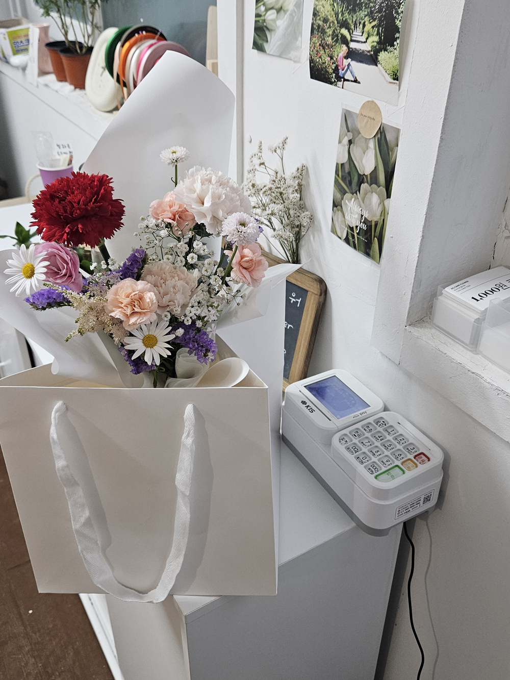 생각보다 사이즈도 아담하니 귀여워요! 저희 같이 작은 매장에는 딱 적당해서 매장 공간 활용하기 정말 좋아요 ㅎㅎ 화면도 선명하고 터치도 잘 돼서 손님들이 사용하시기 편할 것 같아요~ 프로그램은 토스로 결정했는데 포스기랑 연동된다해서 오픈 하고 나면 고객응대도 한결 수월해질 것 같아서 기대가 됩니다!!